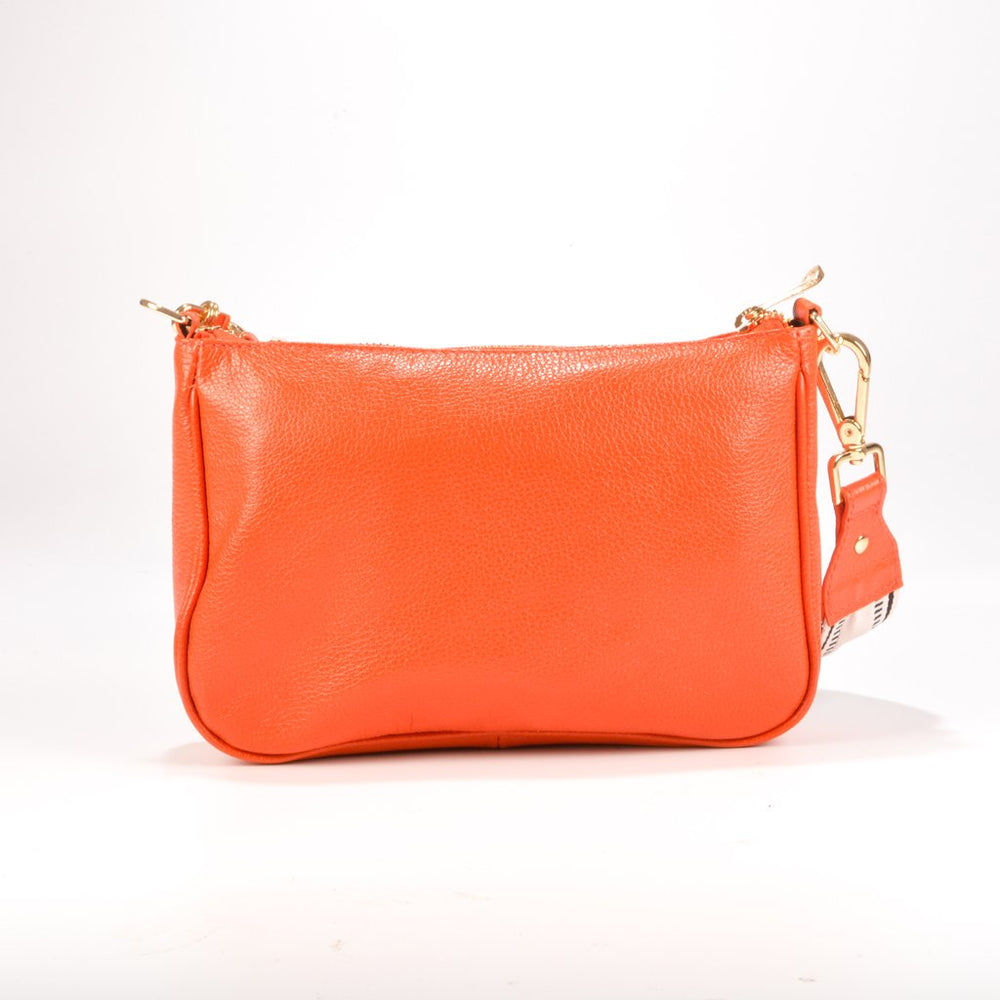 Bolsa transversal 3 em 1 com acabamento em couro na cor Abóbora (laranja) com alça de corrente e alça longa em gorgorão.