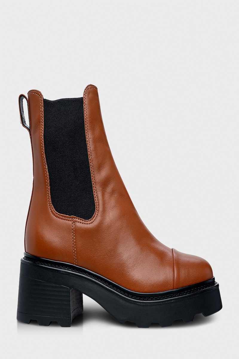 Bota chelsea de couro. Possui o cano curto, bico redondo e o salto tratorado chuncky que é o seu diferencial. Puxador na parte traseira facilitando o calce. Com palmilha da cor do modelo, possui também o ícone e a inscrição do nome da marca. FEITO EM COURO LEGÍTIMO.