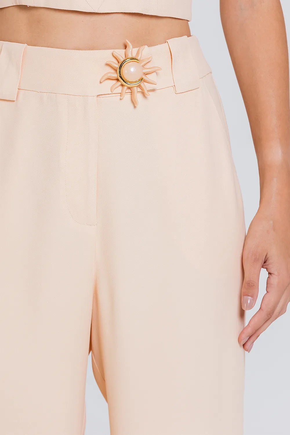 Crepe de acetato com viscose,Calça Reta,Botões Sol,Alfaiataria