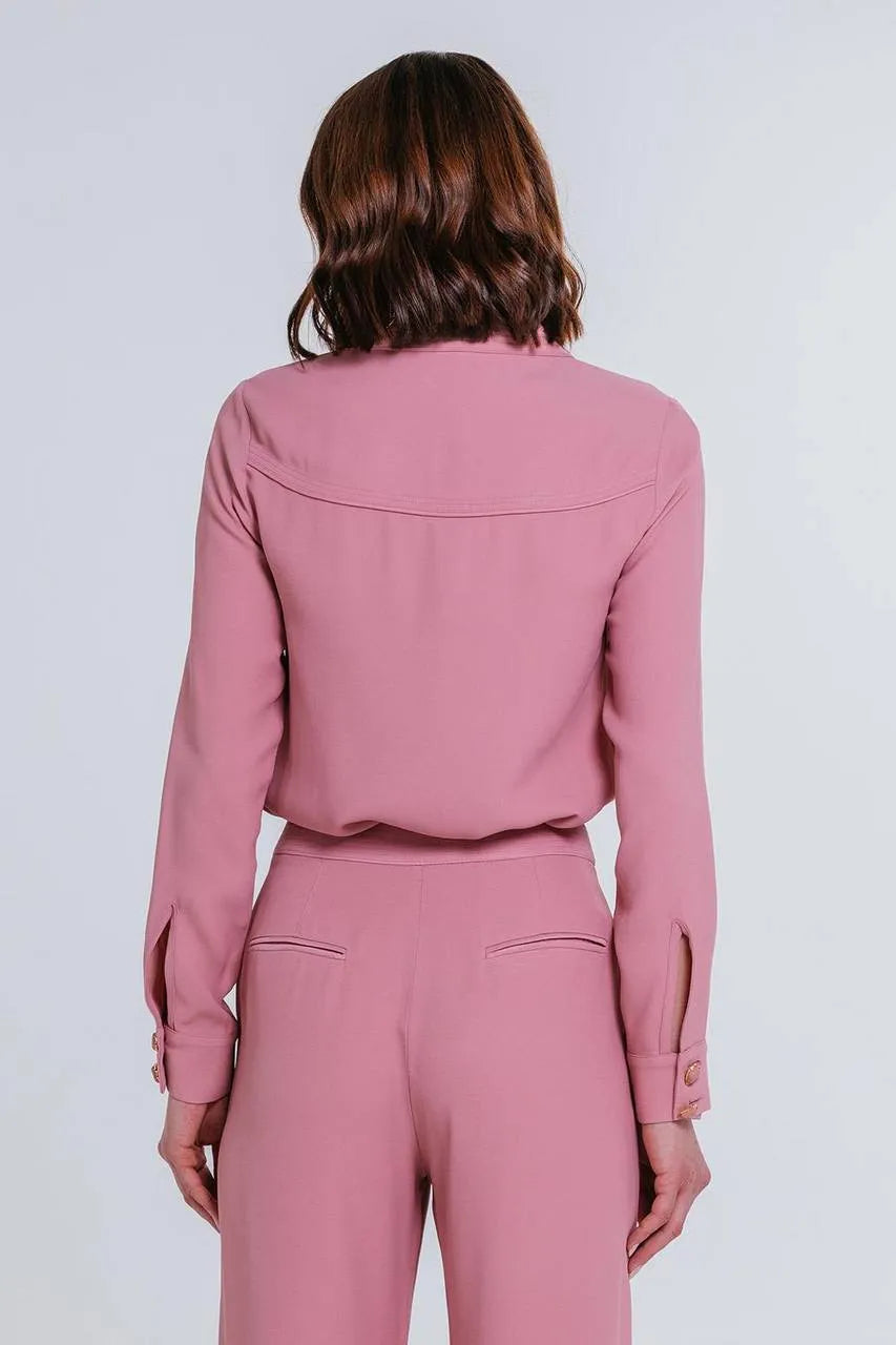 A peça resgata a força da alfaiataria em versão feminina e atual. Sua gola dupla com abotoamento reforça o design sofisticado, enquanto os botões coração no colarinho e nos punhos revelam um detalhe sutil e exclusivo. Uma camisa que equilibra modernidade e elegância atemporal.