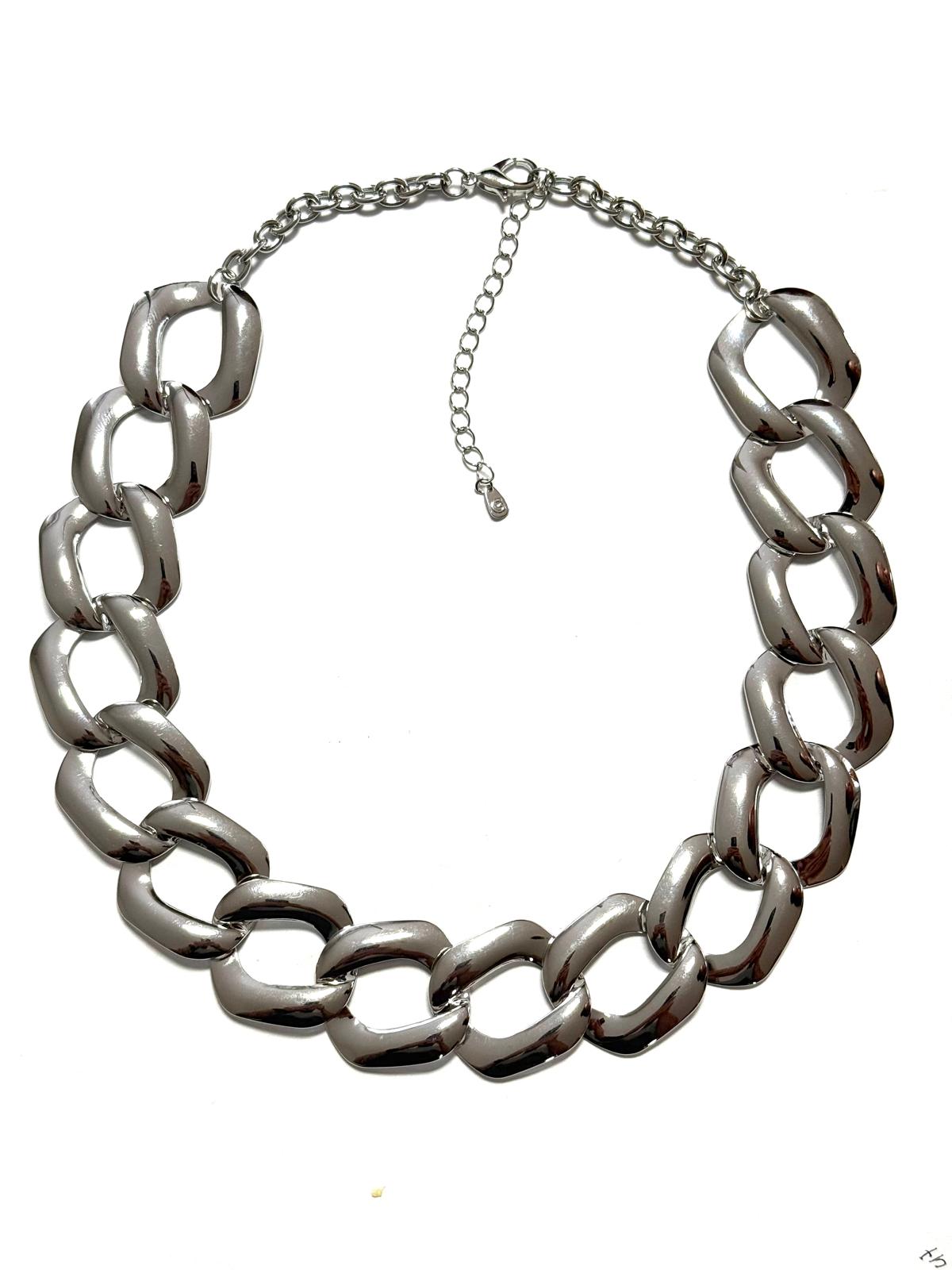 Colar Elos Lisos Confeccionado em Banho de Ródio Branco.