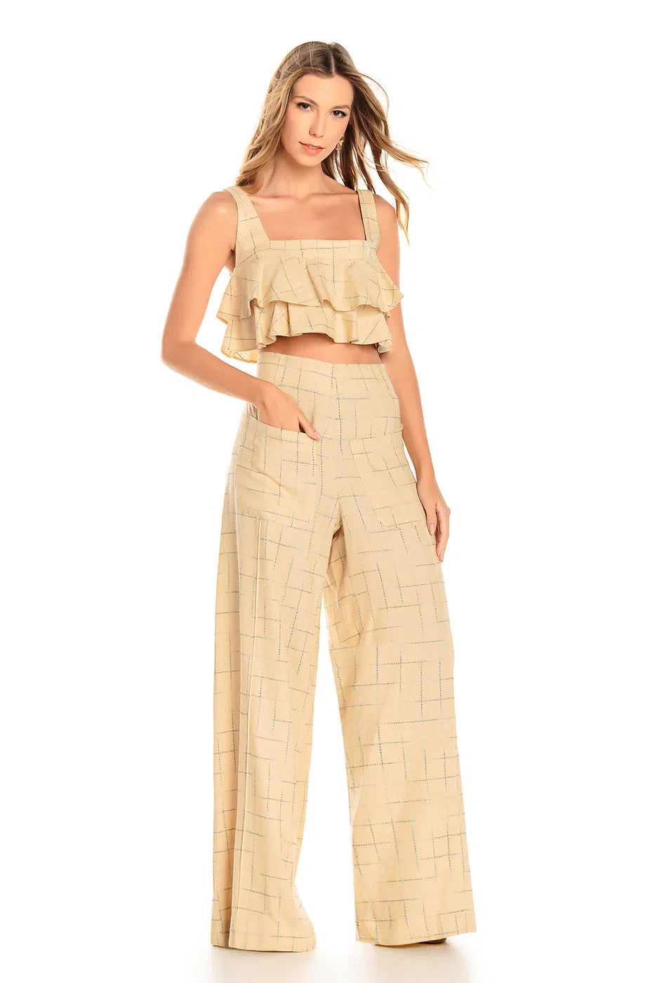 Conjunto Calça+Cropped Babados Anne Fernandes