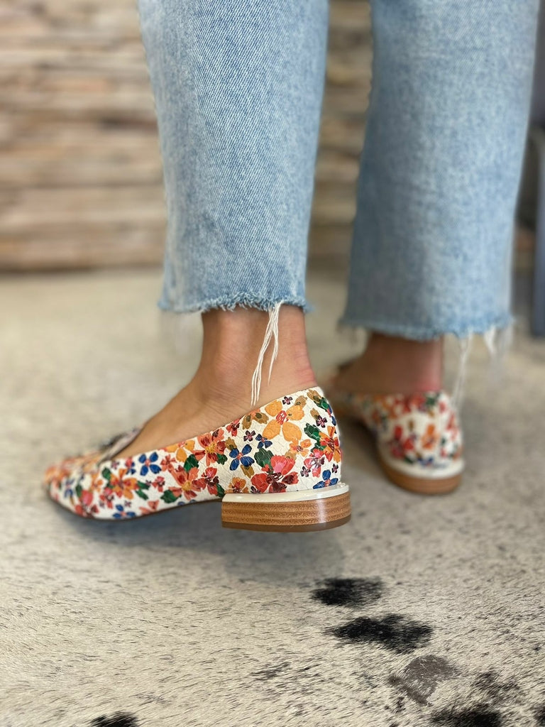 Loafer em couro com estampa Blooming (floral multicolorido). O modelo com detalhe de pedrarias na parte superior imprime fashionismo e brilho para as suas produções.