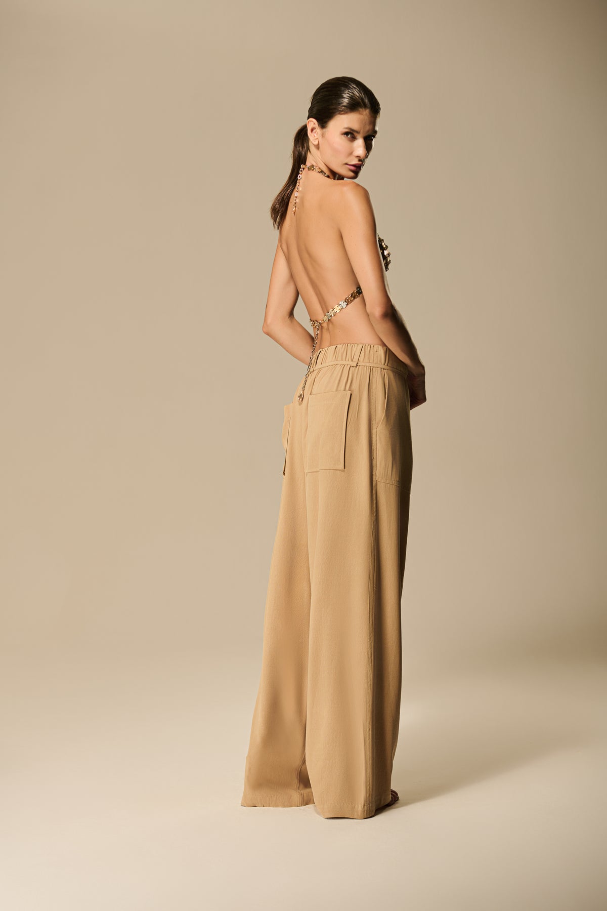 Este top halter é uma peça-escultura que transforma o corpo em palco de luz e movimento. Composto por discos metálicos espelhados, estrategicamente conectados para criar uma trama fluida e reluzente, ele oferece um visual futurista com toque artesanal. O design sem costuras aparentes valoriza a silhueta com ousadia e sofisticação, enquanto o acabamento reflexivo captura a luz em cada ângulo, ideal para produções noturnas ou editoriais de moda. Versátil e marcante, ele pode ser usado como peça principal em looks minimalistas ou como destaque em composições maximalistas.