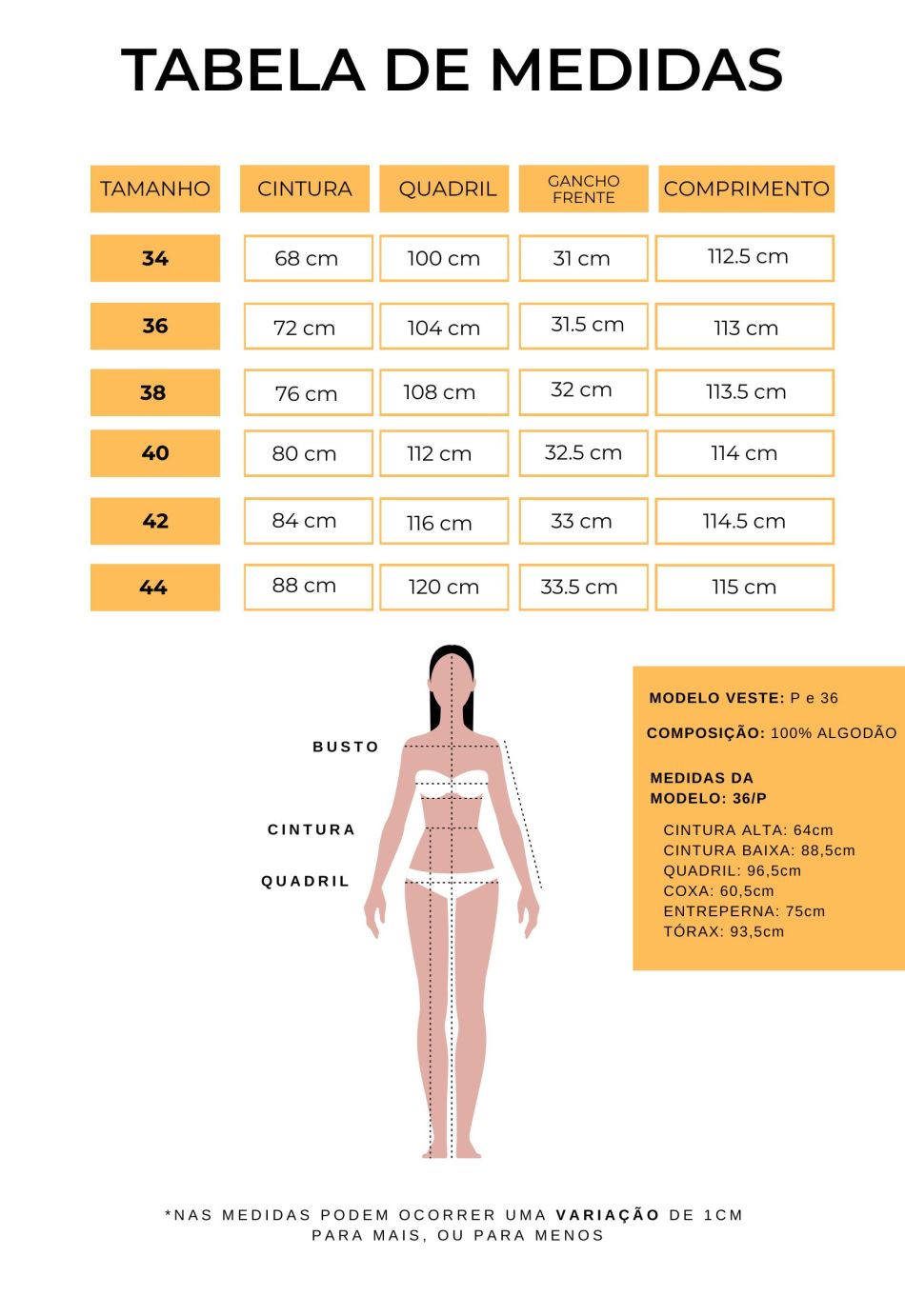 Veja os tamanhos em medidas brasileiras e o equivalente nos Estados Unidos para te orientar. Em caso de dúvidas, entre em contato conosco pelo WhatsApp ou pelo telefone: (857) 237-8914, durante o horário comercial.