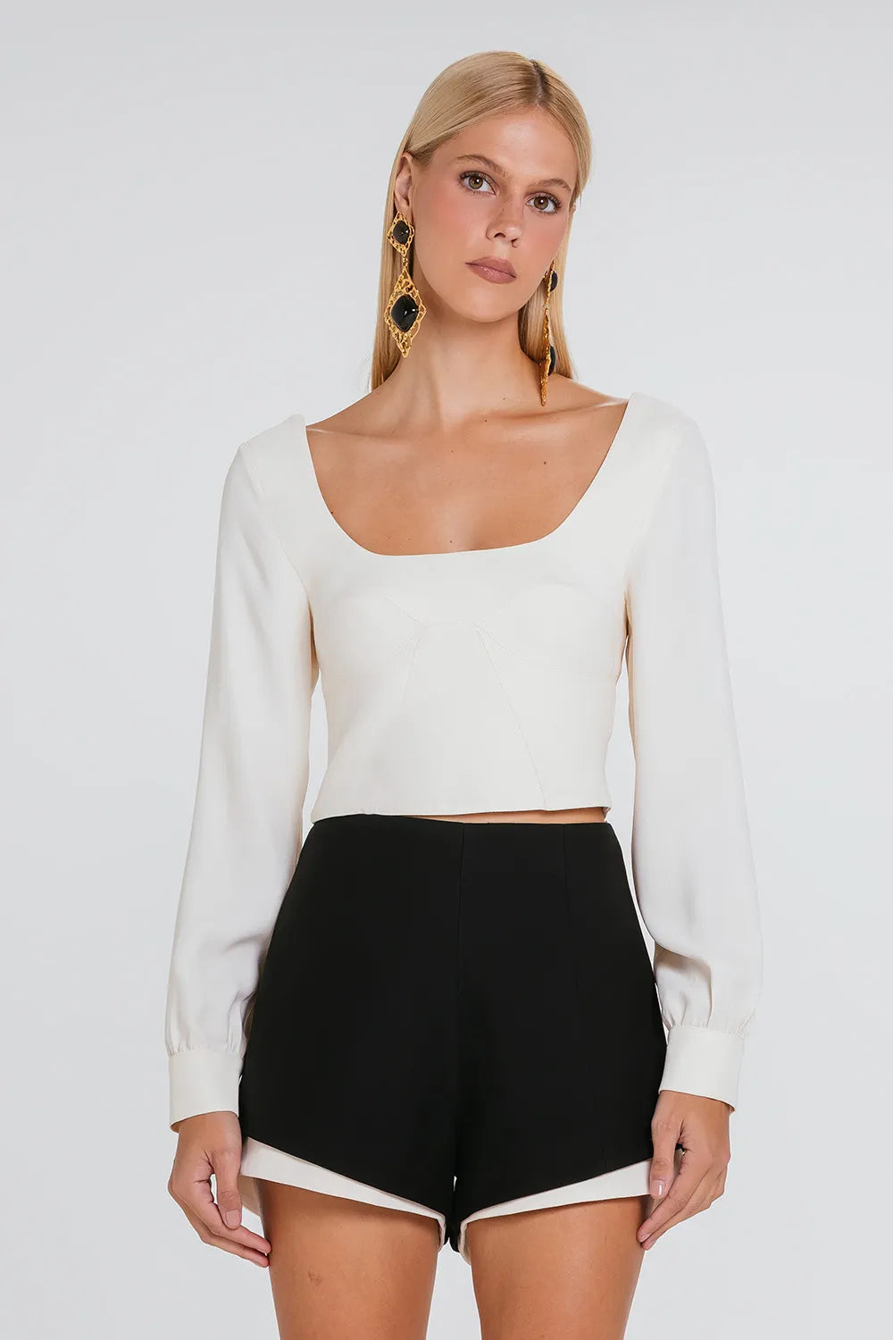 • Finalizado com zíper invisível no meio das costas, é um short versátil e moderno que combina facilmente com camisas, jaquetas ou blusas elevando produções casuais a um nível refinado e atemporal.Crepe de acetato com viscose