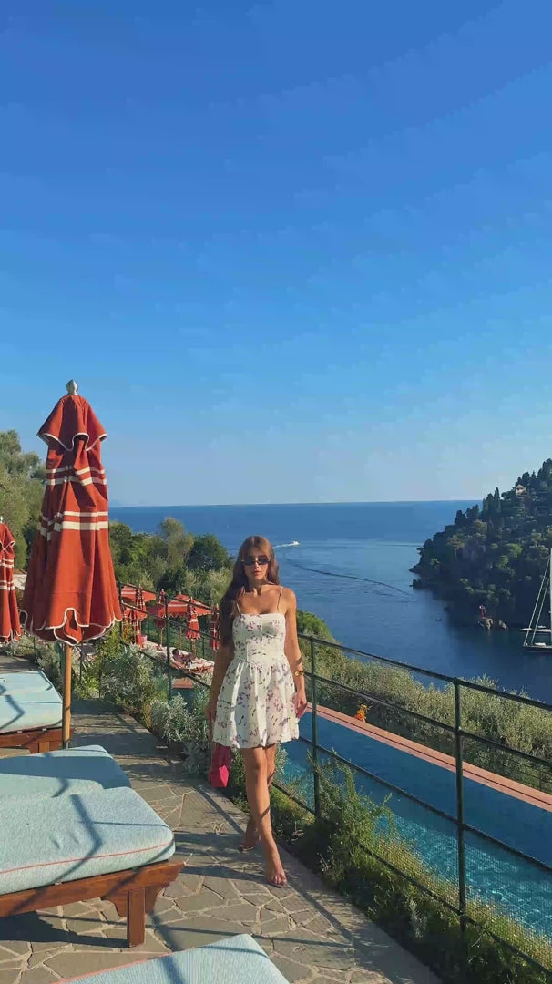 inspiradas no verão europeu. Fechamento por zíper de metal nas costas.