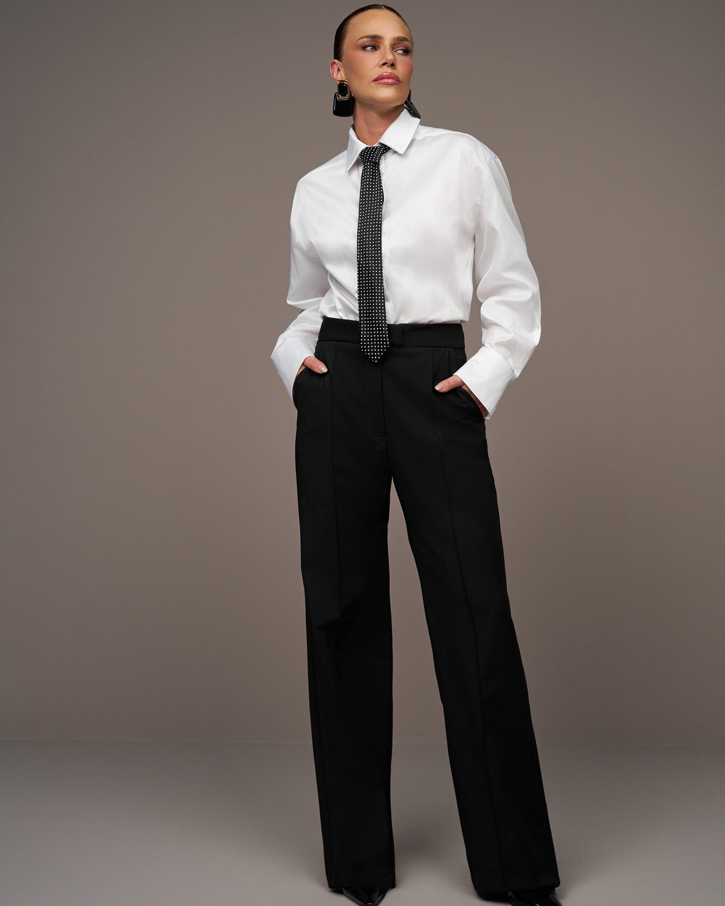White Oversized Shirt by Anne Fernandes. Tricoline shirt with long sleeves, button closure at the cuffs, collar, button closure at the front, and oversized fit. Does not include other items.