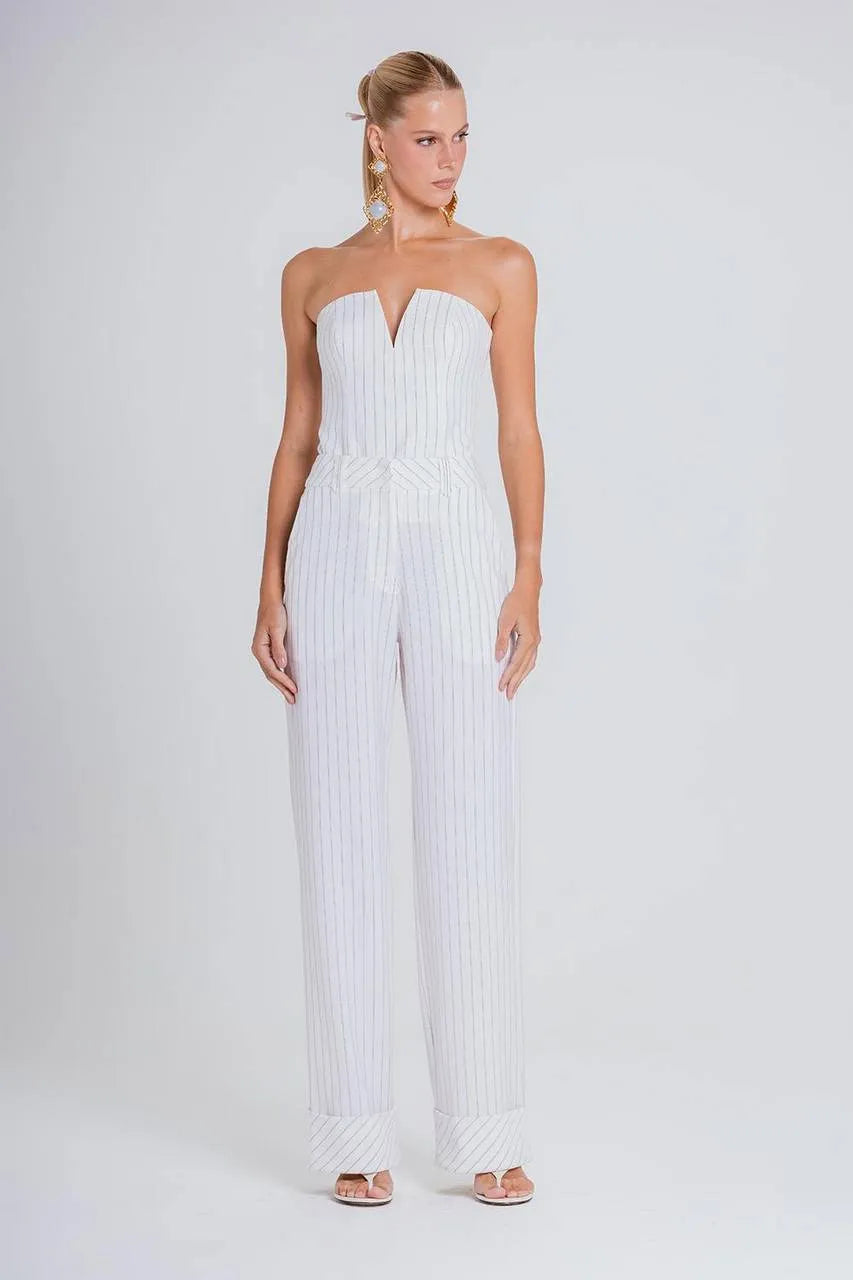 The sophistication of the pinstripe pattern takes on a super feminine and cool vibe in this piece, and the elasticated back ensures a flawless fit with all the comfort we can't do without. It's the perfect choice to create an ultra-fashionable outfit with the Fabiana Pants or to instantly upgrade your favorite jeans.