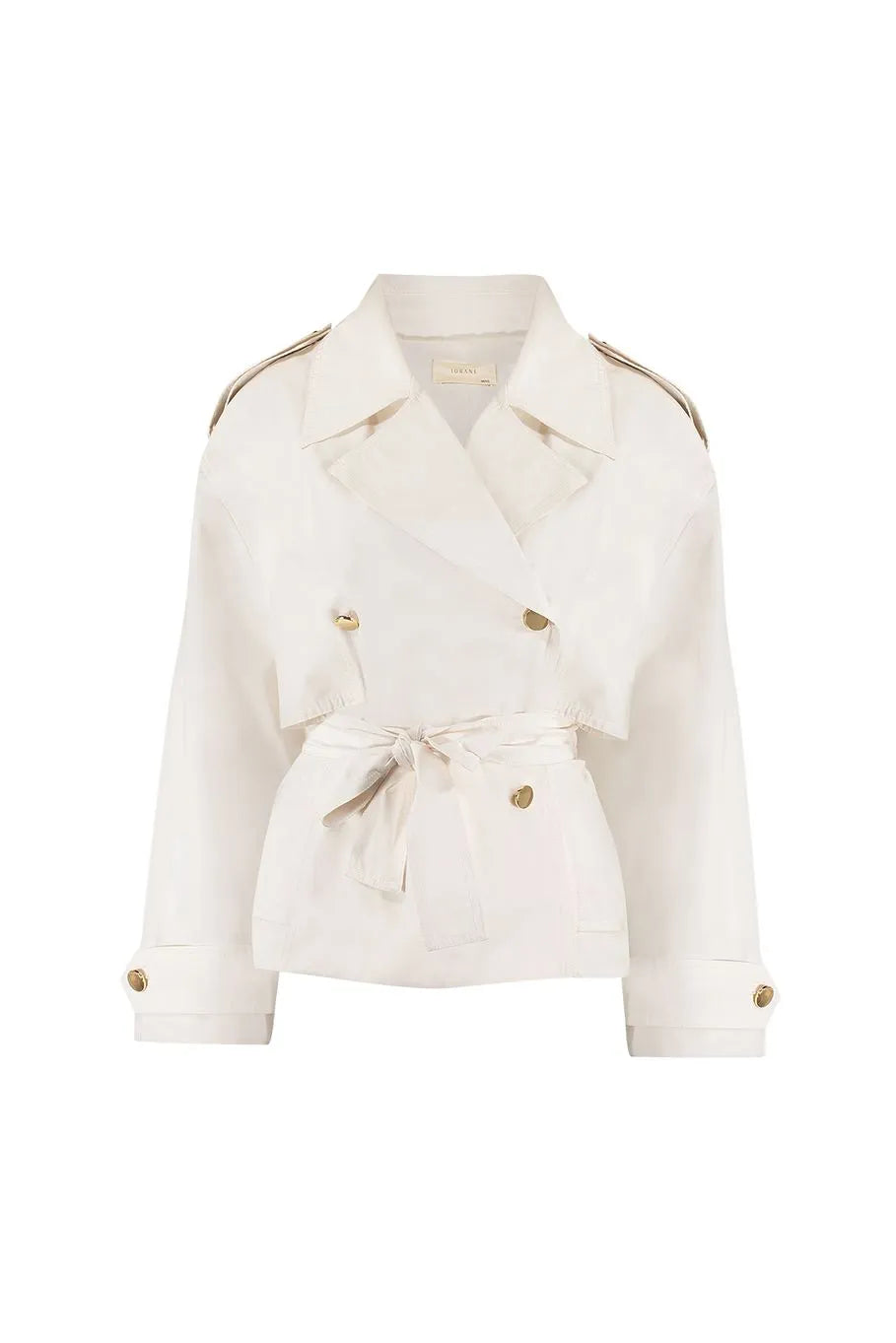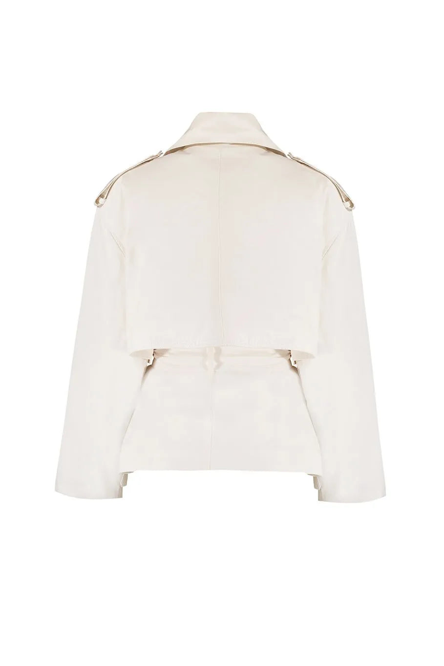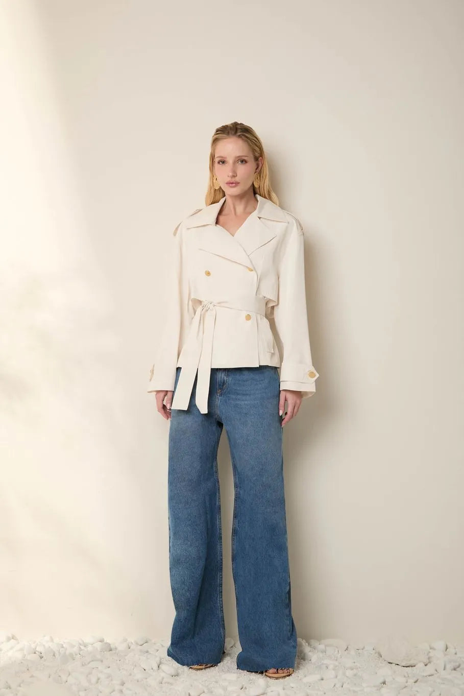 A Jaqueta Viviene é a peça-chave para um look sofisticado e cheio de estilo! Com design estruturado e modelagem ampla, ela apresenta lapelas marcantes, abotoamento duplo com botões dourados e faixa para amarração na cintura, que valoriza a silhueta com elegância. As mangas longas e os detalhes inspirados no clássico trench coat trazem um toque atemporal, enquanto o acabamento refinado em Off White garante versatilidade para compor diferentes produções. Perfeita para sobreposições modernas, a Jaqueta Viviene une sofisticação e contemporaneidade, sendo indispensável no guarda-roupa feminino!